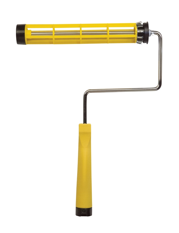 9 in heavy-duty frame with metal retaining ring. Professional cage frame design, thick gage stainless steel bar, light weight plastic cage for reduced fatigue, metal retaining ring eliminate walk off, built in bucket hook on poly pro handle, Acme thread for pole attachment.