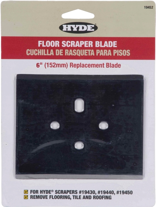 Hardened carbon steel blade with two sharpened edges for long life. Can be resharpened. Replacement blade for Hyde® hammer scrapers #19430, 19440 or 19450.
