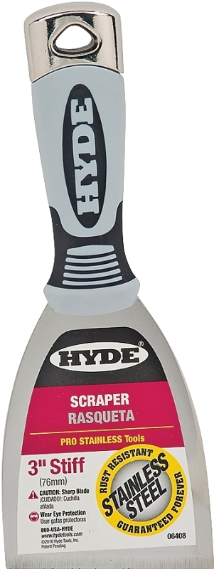 Premium-quality Pro Stainless scraper features 3 in stiff rust-resistant blade, double hollow ground for the ideal flex-point, plus durable Hammer head® end for setting nails and screws. Excellent grip has overmold grip for heavy-duty scraping.