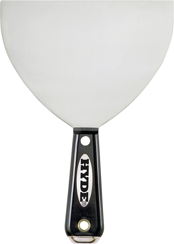 6 in flexible blade with desired flex point for applying and smoothing compound and taping joints. Black & Silver® joint knife with high-carbon steel blade. Durable nylon handle with hammer head end for setting popped nails and screws as you work. Full-tang blade.