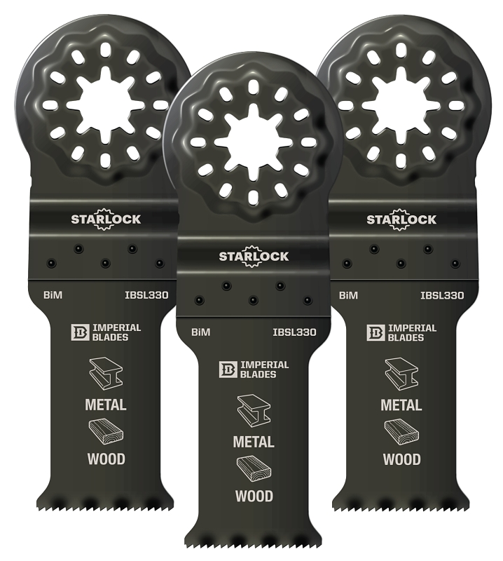 Imperial Blades Starlock Standard Blade, Teeth per Inch: 18, Bi-Metal, Applicable Materials: Drywall, Nail, Non-Ferrous Metal, PVC, Wood, Black, 1-7/8 in L, 1-1/8 in W, Suitable for: Makita, Masterforce, Milwaukee, Performax, Rockwell, Bosch Starlock, Bosch StarlockPlus, Bosch StarlockMax, Fein Multi-Talent Oscillating Tools