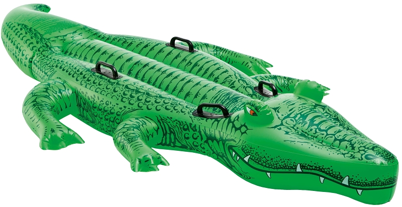 Soak up the sun on top of a lovable giant gator. Adventure time is here with the Intex giant gator ride-on. Sure to delight your child, this fun ride-on float is designed with two air chambers for added safety and four heavy-duty grab handles to hold on while floating in the pool.