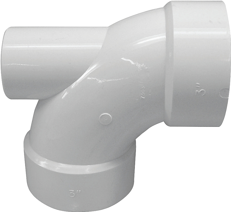 IPEX Pipe Elbow with 2 in Low Heel Inlet, Nominal Size: 3 in, Hub Connection, Angle: 90 deg, PVC, White