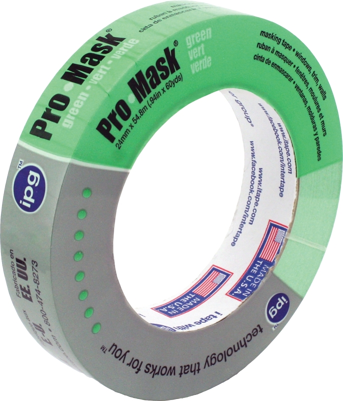 IPG 5803-1 Masking Tape, 60 yd L, 0.94 in W, Crepe Paper Backing, Light Green