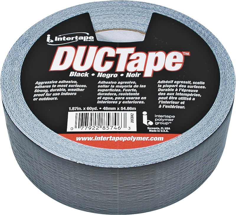 IPG 20C-BK2 Duct Tape, 60 yd L, 1.88 in W, Polyethylene-Coated Cloth Backing, Black