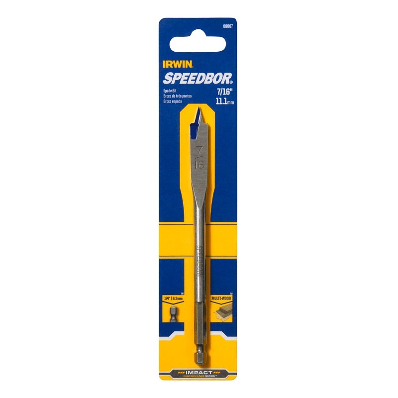 Irwin 88807 Spade Drill Bit, 7/16 in Dia, 6 in OAL, Flat Flute, 1/4 in Dia Shank, Hex Shank