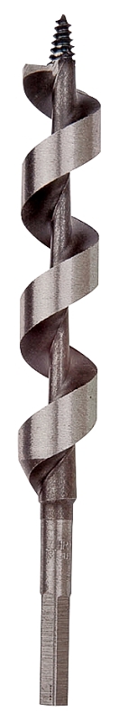 Full length heat-treated bit with wide lands keep the bit straight as it bores through the hole. The flutes are ground behind the lands to funnel chips to the inside of the bit and away from the outside diameter. Single spur cutting edge scribes the circumference of the hole, coarse screw point provides fast boring in hard and soft woods. All bits have a 4-1/2 in twist length and a 7-1/2 in overall length.