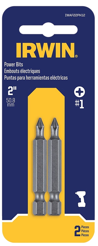 Irwin IWAF22PH12 Power Bit, #1 Drive, Phillips Drive, 1/4 in Shank, Hex Shank, 1-15/16 in L, Steel