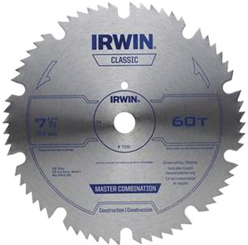 Irwin 11240 Circular Saw Blade, 7-1/4 in Dia, 5/8 in Arbor, 60-Teeth, Carbon Steel Cutting Edge