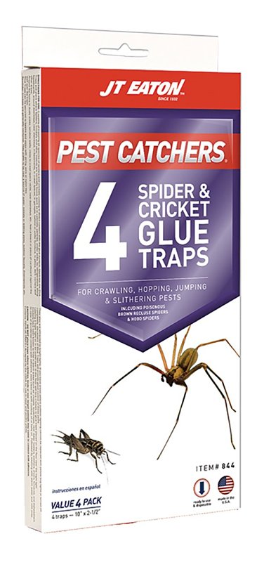 Ready to use. Non poisonous and disposable. Pre-baited with insect attractant. For crawling, hopping, jumping and slithering pests. Designed specifically for catching spiders, including poisonous spiders such as the Hobo spider and all species of crickets. Made with famous STICK-EM glue. Large 2-1/2 in x 10 in traps. 4 traps per package.