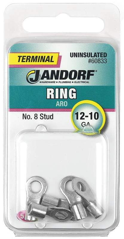 Jandorf 60833 Ring Terminal, 12 to 10 AWG Wire, #8 Stud, Copper Contact