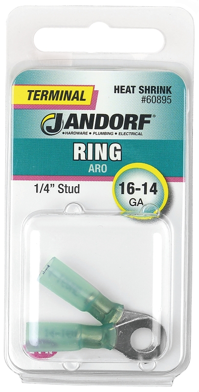Jandorf 60895 Ring Terminal, 16 to 14 AWG Wire, 1/4 in Stud, Green