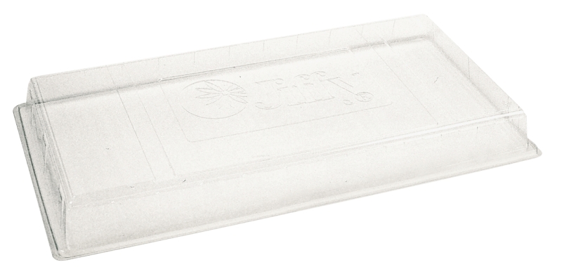Clear to maintain greenhouse humidity and temperature for healthier seedlings. Reusable, made from recyclable plastic. Will fit Jiffy plant trays No. 234 (SKU 453-2420) and 236.