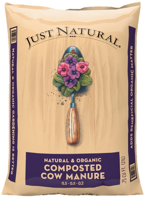 Just natural organic composted cow manure adds natural fertilizer to the soil while providing aeration and improved drainage. Natural and organic cow manure also helps the soil to retain moisture.