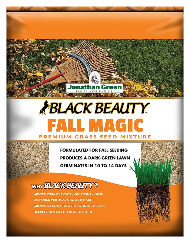 Black Beauty® Fall Magic™ has been custom mixed for successful fall seeding. This mixture is great to use on established lawns or to start new lawns from scratch. Repairs summer damage and provides an attractive, thicker, greener lawn. Use Black Beauty® Fall Magic™ in sun and shade lawn areas. The mix contains several grass types, including Black Beauty® tall fescues.