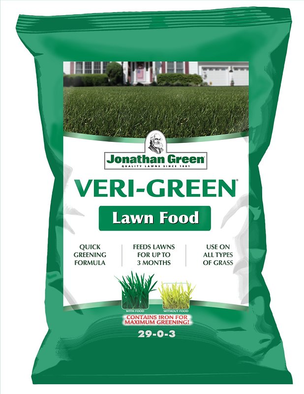 Jonathan Green Green-Up lawn food is a quick, deep greening fertilizer that can be used on all types of turf grass and will feed the lawn for up to three months. The polymer-coated nitrogen in this product provides a slow and steady food release, preventing a surge of grass growth in the early spring, which reduces grass clippings when mowing. Green-Up is the finest fertilizer to use in the early spring if crabgrass is not present.