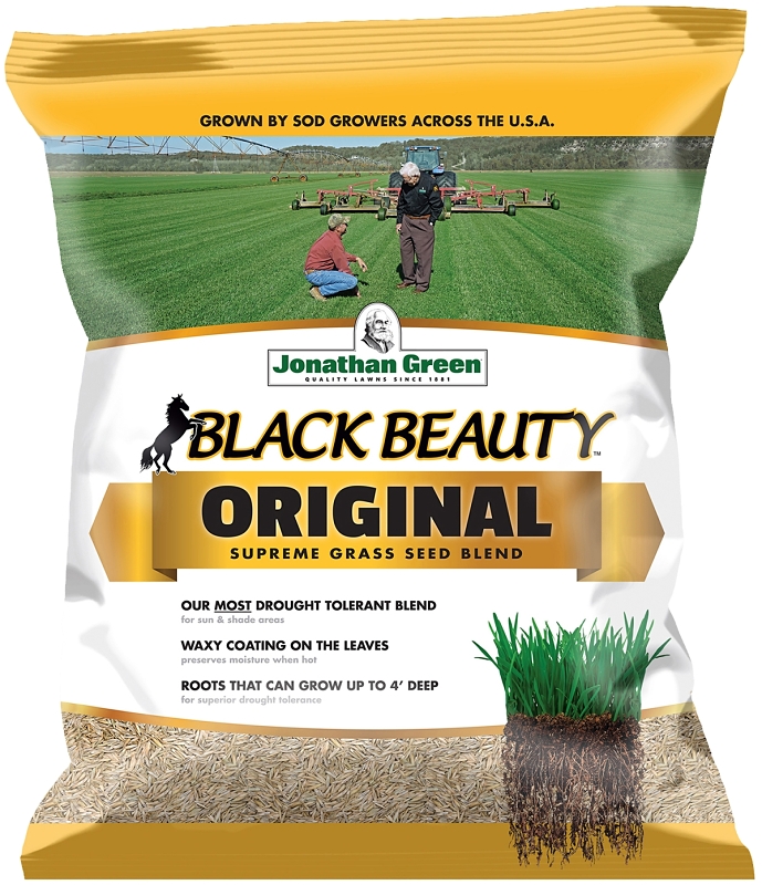 Black Beauty® produces a naturally darker-green turf. With improved disease resistance and drought tolerance, Black Beauty® Grass redefines what a “green-lawn” is supposed to look like! The grass leaves possess an invisible waxy coating, very similar to what you’d find on an apple, which helps to preserve moisture in the leaf and wards off stress from heat, cold, wind and disease. This blend grows well in clay or sandy soils and in full sun or partial shade. Black Beauty® will improve any lawn it is over-seeded into.