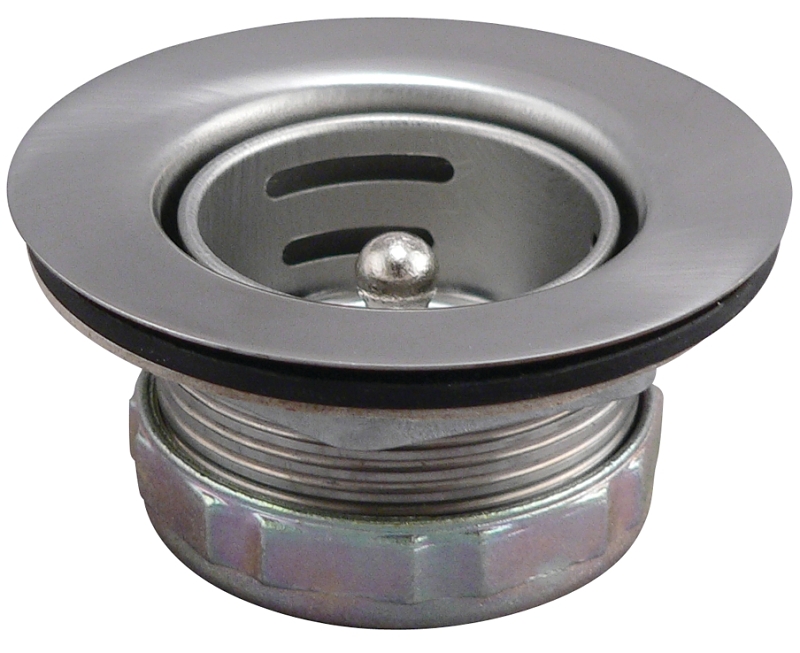 Master duplex strainer. Stainless steel body and grid with rubber stopper. 1-1/2 in x 4 in CP. tailpiece. For 2 to 2-1/2 in openings. Boxed.