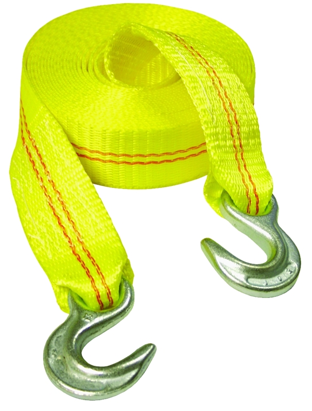 Keeper® tow straps are performance engineered to provide the ideal solution for your towing needs. The Hi-Test® webbing of our tow straps will never rot or mildew and the strap provides a lightweight solution for easy, compact storage impossible to achieve with a chain. Zinc-plated, forged hooks do not rust and are secure and reliable in every situation. Spring latches attach easily to vehicle frames, even in emergency situations when strength and speed are essential. Abrasion resistance and higher tension capacities allow Keeper® tow straps to resist breakage and remain dependable even under the most demanding conditions. This 2 in x 25 ft tow strap has a webbing capacity of 12,000 lb, with a max vehicle weight of 5000 lb, It is used for full-sized cars or light trucks.