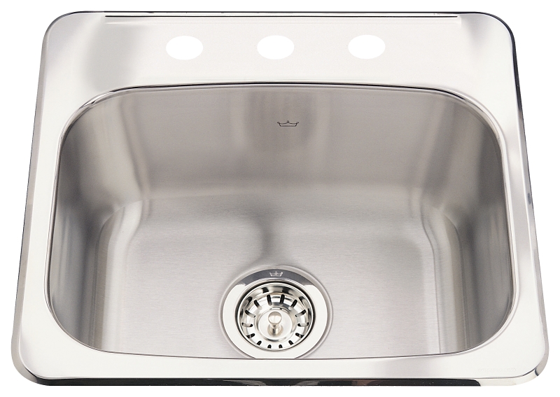 Kindred Steel Queen Bar/Prep Sink, 20 ga, Bowl Width: 17 in, Bowl Depth: 8 in, Bowl Height: 12 in, Number of Bowls: 1, Number of Deck Holes: 3, 18-8 Stainless Steel, Top Mounting, 19-1/8 in OAW, 17 in OAH