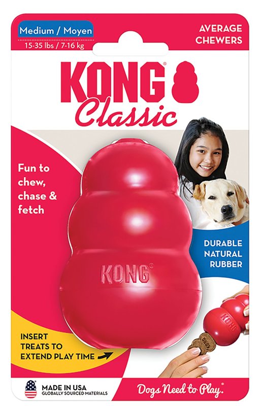 The Kong classic is the gold standard of dog toys and has become the staple for dogs around the world for over forty years. Offering enrichment by helping satisfy dogs’ instinctual needs, the Kong classic’s unique natural red rubber formula is ultra-durable with an erratic bounce that is ideal for dogs that like to chew while also fulfilling a dog’s need to play. Want to extend play time. Be sure to stuff with tempting bits of kibble and entice with a dash of peanut butter. Add to the fun by adding Kong snacks and topping with Kong easy treat.