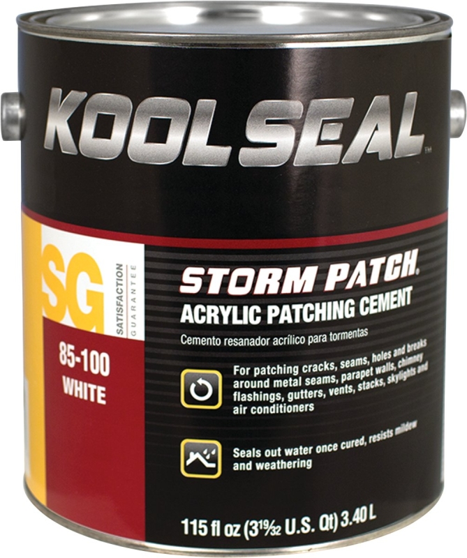 Kool Seal® Storm Patch® acrylic patching cement is designed to stop leaks in damp or dry surface conditions. Its long-lasting and flexible patch seals out water and resists mildew and weathering when cured.