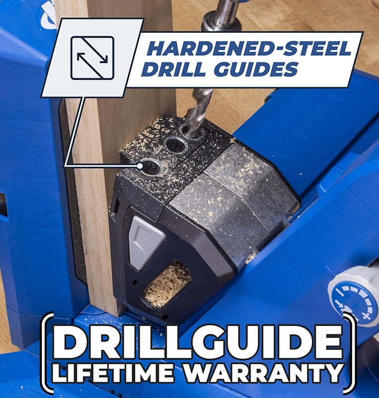 Build pocket hole projects faster than ever. The pocket hole jig 720 is the most advanced jig yet from Kreg® with that features make project building incredibly efficient. It’s the premium choice for project builders who want to build smarter and faster than ever. This jig makes quick work of creating pocket hole joints. Features like Automaxx™ one-motion clamping help you save time and effort by simultaneously clamping your workpiece and automatically adjusting to the exact thickness of your material (from 1/2 to 1-1/2 in). GripMaxx™ anti-slip holds the project piece secure so you never have to worry about it shifting while you drill pocket holes. A dust collection attachment connects to your shop vacuum to keep your workspace dust-free. The jig has a sturdy, steel reinforced spine, plus hardened steel drill guides with a lifetime warranty, to ensure years of high-quality performance. The on-board tool storage keeps accessories like the hex wrench and drill bits close at hand. With the pocket hole jig 720, you get 60 Kreg® pocket hole screws and a free project plan so you can start building right away. The pocket hole jig 720 can even be transformed into the ultimate joining setup by adding the pocket hole jig clamp or docking station, sold separately.
