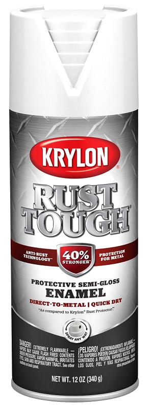 Krylon Rust Tough K09266008 Enamel Spray Paint, Semi-Gloss, White, 12 oz, Can