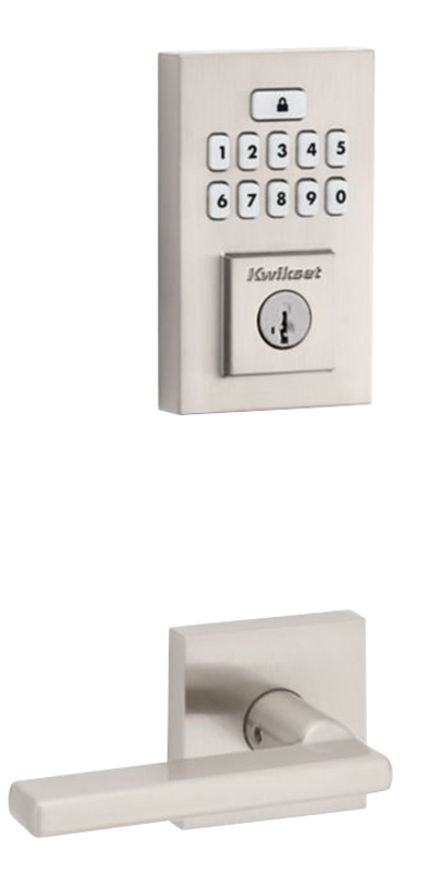 Kwikset 270 Smartcode Deadbolt, Electronic, Contemporary, 2, Power Source: Battery, 1, KW1 Keyway, Keyed One-Side Key, SmartKey, Round Corner Strike, 1-1/8 x 2-3/4 in Strike, Adjustable Backset, 2-3/8 to 2-3/4 in Backset, 1 x 2-1/4 in Faceplate, 1 in, 2-1/8 in, 1-3/8 to 1-3/4 in, Reversible, 50, Commercial/Residential: Residential, Yes, Yes, Satin Nickel, Dimensions: 1-3/16 in L x 2-13/16 in W x 4-29/32 in H, Includes: (2) Keys and Round Deadbolt Strike