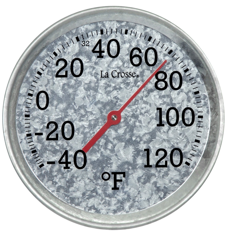 La Crosse Thermometer, Dial Display, 8 in Dia x 1.85 in D Display, -40 to 120 deg F
