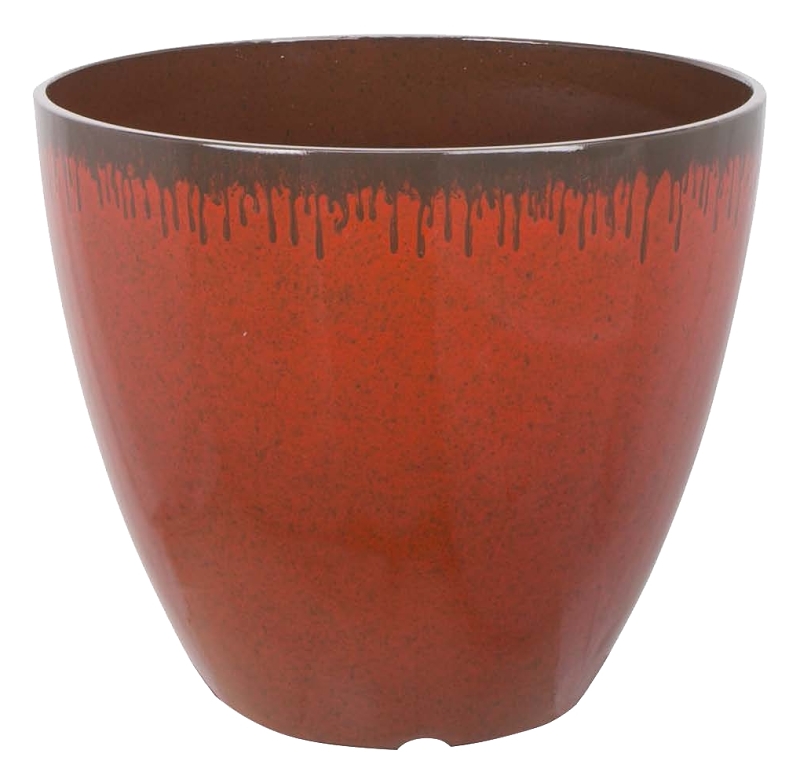 Landscapers Select Planter, Floor Standing, Round, 0.346 cu-ft, Red, Mocha Drip, Resin, Number of Tiers: 1, 12 in Dia, 10.3 in H, Indoor/Outdoor: Indoor/Outdoor