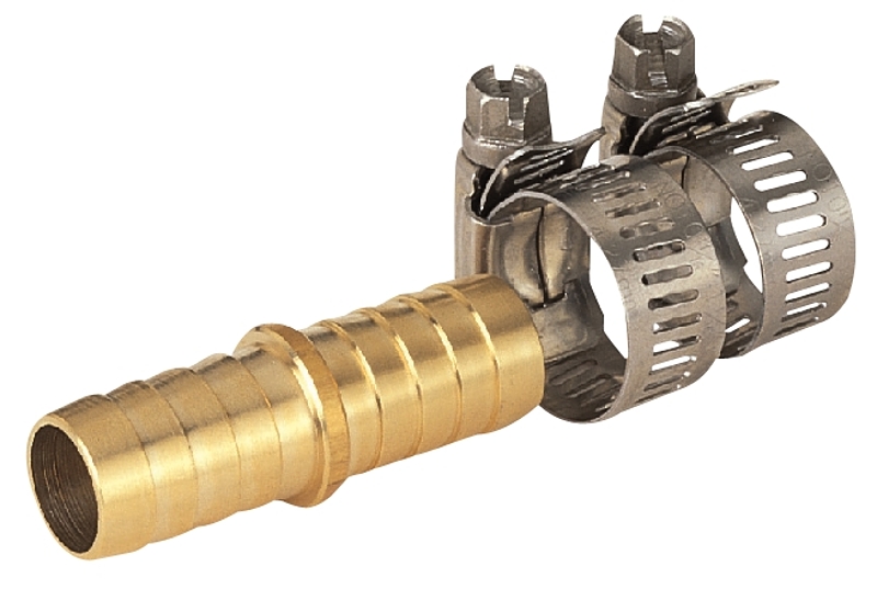 Brass garden hose mender with clamps.