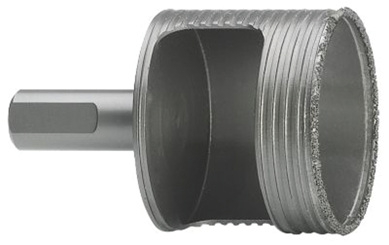 No arbor required. Split point pilot bit for faster penetration and less walking. Over sized slot in hole saw for easy plug removal with low torque, little pressure required for fast, easy cutting. Continuous, brazed edge lasts longer in tile and stone.
