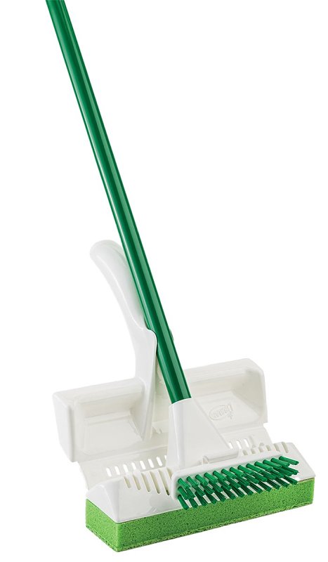 New sleek and modern design with added features. Extra absorbent cellulose coated sponge. Extra thick ergonomic wringer completely wrings the sponge so floors dry faster. Attached scrub brush deep cleans grout.