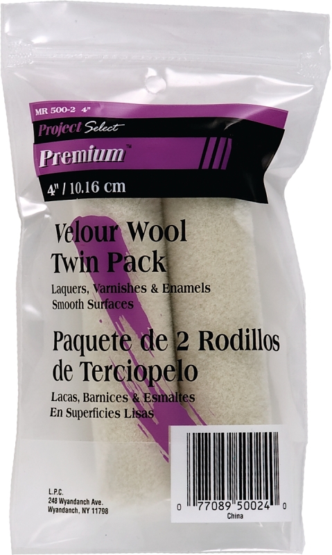 Linzer MR500-2 Paint Roller Cover, 1/8 in Thick Nap, 4 in L, Velour Cover