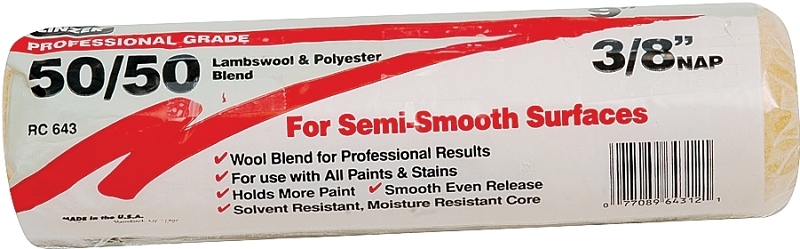 Linzer RC643 Paint Roller Cover, 3/8 in Thick Nap, 9 in L, Lambs Wool/Polyester Cover