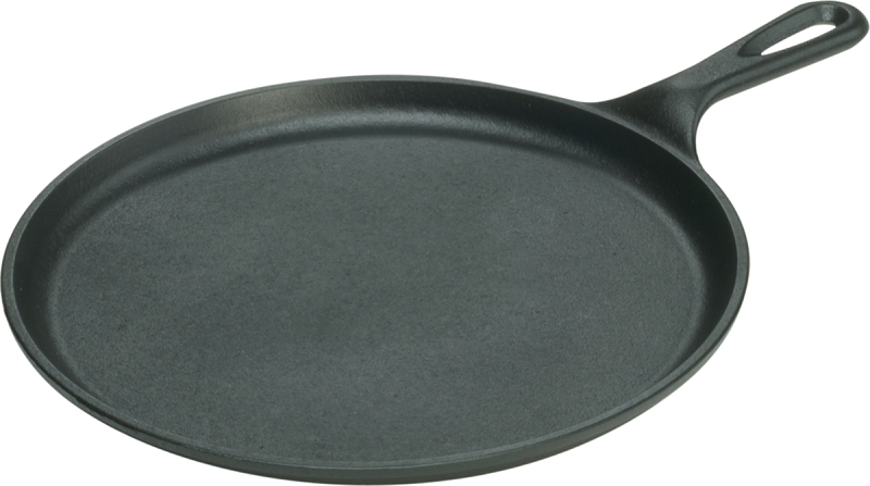 This round cast iron griddle pan is the ideal tool for cooking pancakes, pizza or quesadillas. The slightly raised edges keep oil, batter and other ingredients neatly contained. Cast iron can be used on a stovetop, in an oven or over a campfire.