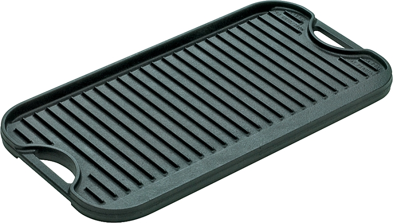 The Lodge reversible pro grid Iron grill/griddle provides excellent heat retention and distribution and fits over two stovetop burners. Two easy-grip handles allow for easy lifting, flipping or hanging when not in use. You can use this grill to cook pancakes and eggs or grill chicken and steak.