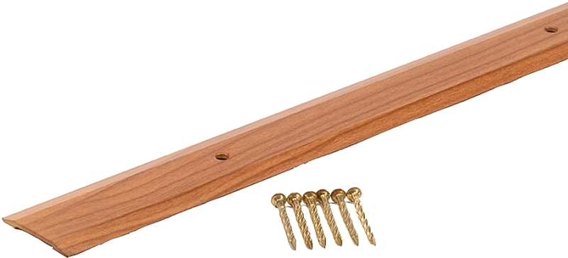 The 1-1/4 x 72 in Metal Decor cherry seam binder easily covers a seam or gap between two flooring surfaces of equal height. Seam Binders prevent carpet edges from fraying, vinyl floor seams from curling and create a smooth transition between different flooring surfaces. Seam binders are easily secured to wood and concrete floors with provided screw nails. For installation on concrete floors use wooden pegs.