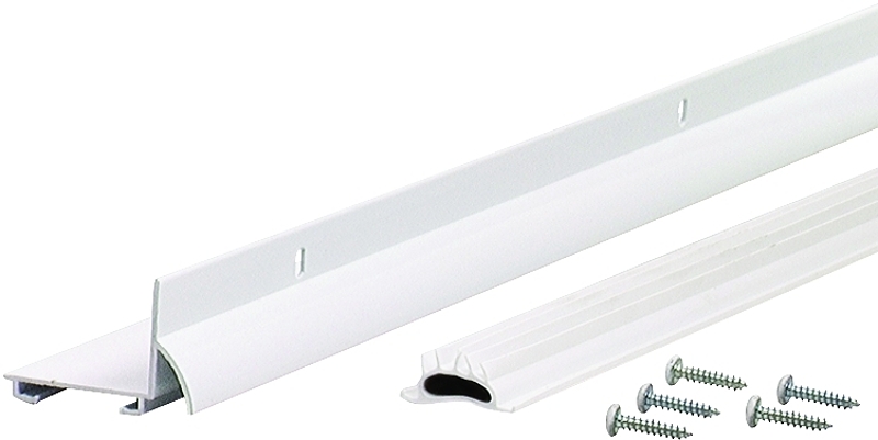 L-shaped DCV 50 door bottom fits both 1-3/8 in and 1-3/4 in doors. Seals between bottom of door and threshold to block out air and moisture. Slotted fastener holes allow easy installation and adjustment. 1-3/32 in height drip cap and 1/2 in height door bottom.