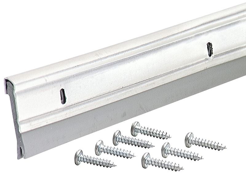 Seals bottom of door keeping out dirt and drafts. Slotted holes for adjustment. 1-3/8 in H.