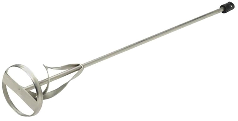 Made from high-quality plated steel. Ribbon blade design ensures even mix of all kinds of material. Ideal for mixing paint, drywall mud, adhesives and coatings. Works at 500 to 900 rpm. Fits 1/2 in variable speed drill.