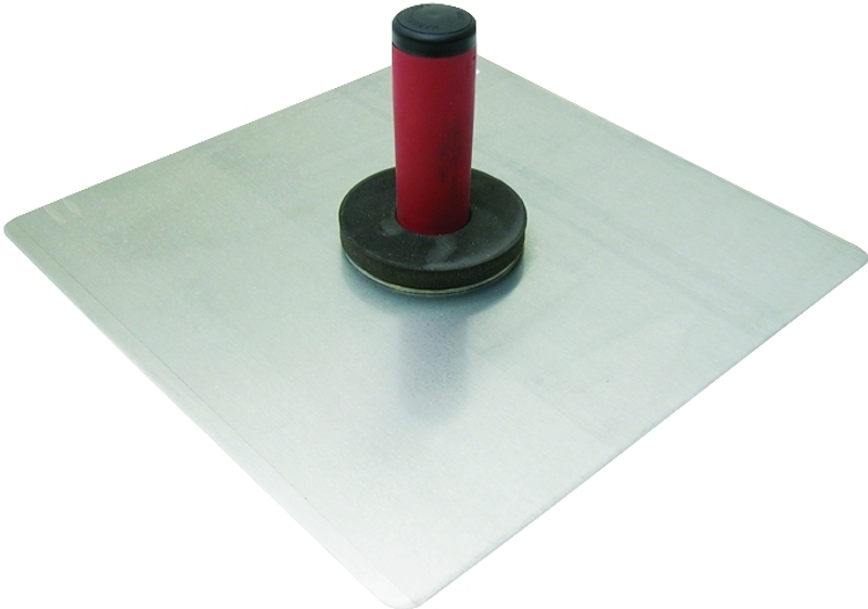 Made of heavy gauge hard-rolled aluminum; lightweight but durable. Edges have been smoothed and the corners rounded for convenience. 3-5/8 in flange with extended hub that is threaded for the handle. Handle and sponge rubber callus preventer included. Resilient DuraSoft® handle provides a soft feel, reduces fatigue and offers excellent durability. Used for holding plaster during application.