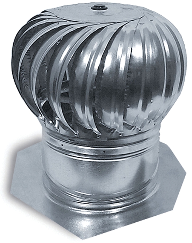 Permanently lubricated track system, upper and lower stainless steel ball bearings prevents metal-to-metal contact, encased to help prevent dirt, dust, sand and other foreign materials from damaging bearings for long life, less friction, smoother spin and wear resistance. Heavy-duty steel spider braces and case-hardened steel shaft for long-lasting strength/durability. Simple, mechanically-locked, two-piece head/base for faster, easier installation. Pre-punched bottom/crimped collar of one-piece base fits tighter, makes installation easier and allows for adjustability up to 12/12 pitch without removing turbine. Extra-large flashing and head with included bottom ring for easier installation and better weather protection. Double ribbed vanes, with convex top, direct even wind-driven rain away from the unit. Dade County/Texas Department of Insurance approved.