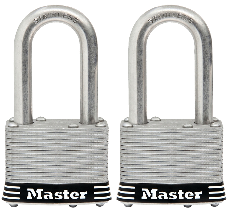 Master Lock 1SSTLFHC Padlock Set, Keyed Alike Key, 5/16 in Dia Shackle, 1-1/2 in H Shackle, Stainless Steel Shackle