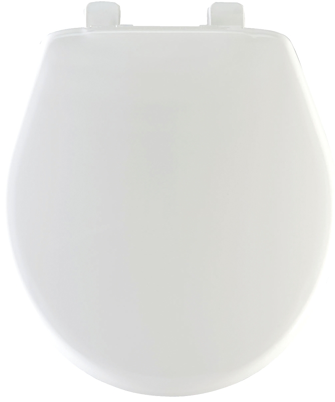 Mayfair 80SLOW000 Toilet Seat, Round, Plastic, White, Hex-Tite Hinge