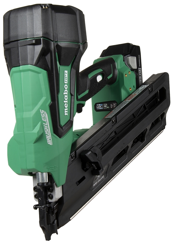 The NR1890DC 18 V cordless paper strip framing nailer completely raises the bar for cordless framing nailers. It is designed so you no longer need the dirty hoses, loud compressors or expensive gas cartridges. It’s equipped with Metabo HPT HPT’s unique air spring drive system that delivers similar performance as a pneumatic nailer, but offers total cordless freedom. It uses sealed compressed air to drive each nail, which results in zero ramp up time, up to two nails driven per second, recoil that feels like a pneumatic nailer and best of all, there is no refilling of the air tank required. This cordless nailer is ideal for all construction framing applications but is particularly useful for punch-out work on a jobsite for quick in-and-out operation with minimal hassle and professional results.