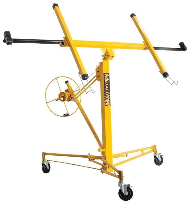 Metaltech Jobsite Drywall and Panel Lift, 150 lb Weight, Steel, Yellow, Powder-Coated, 48.4 in L, 57.9 in W, 57 in H, Number of Casters: 3, Caster Type: Double Locking