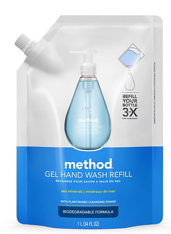 method 328105 Gel Hand Hash Refill, Gel, Light Blue, Sea Minerals, 34 oz Pouch