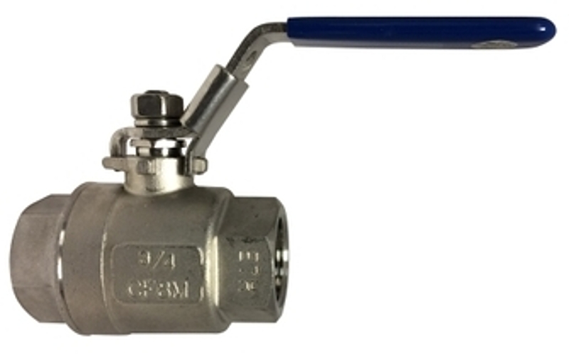 Midland Industries Ball Valve, 2-Piece, 1-1/2 in Connection, FPT Connection, Port Type: Full, 1000 psi, Temperature Rating: -60 to 450 deg F, Media: Gas, Oil, Water, Trim Material: Stainless Steel, Softgoods Material: Reinforced PTFE, Stainless Steel Handle, Dimensions: 4.05 in L x 6.1 in W x 3.54 in H